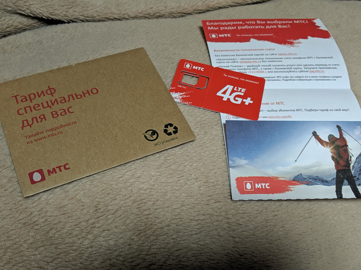 希望のMTC SIMカードを無事に入手。4日程度でデータのみで良いと伝えたら、5GBで1ヶ月分の通話可能なものしかないとの事。料金は500ルーブル。